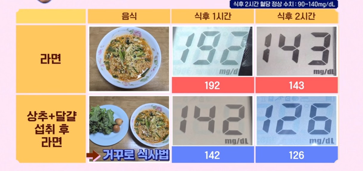 - 순서를 바꿨더라도 과식하면 효과 없음. 전체 섭취량 조절 필요