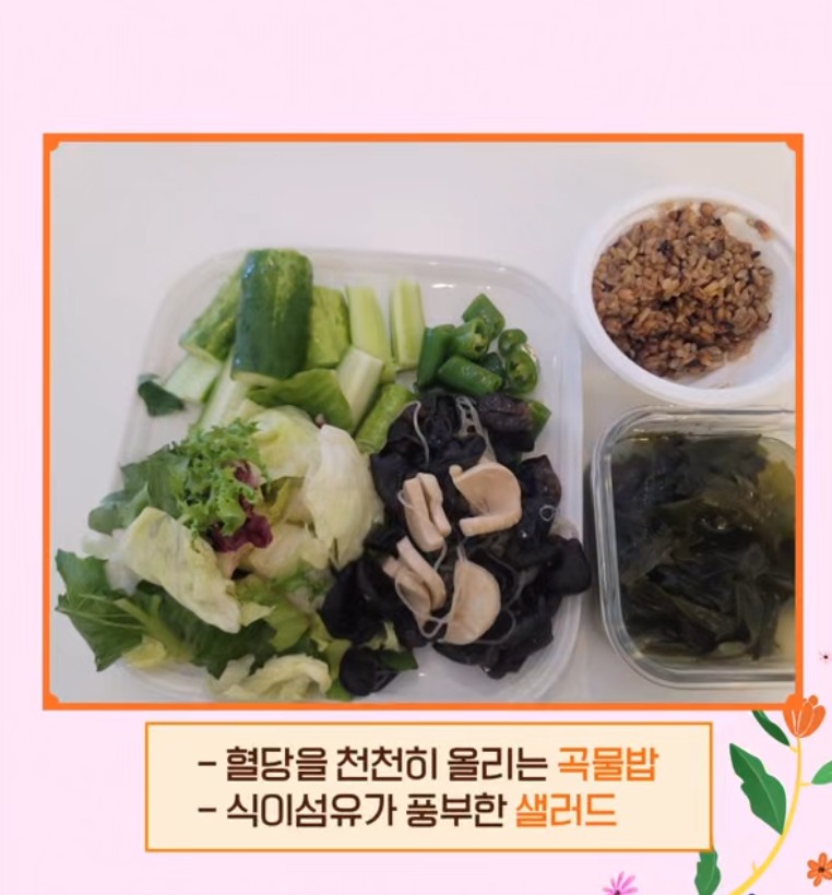 • 샐러드: 식이섬유 풍부한 채소 + 올리브오일 소량.
