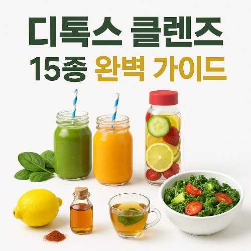 주스·워터·마스터·로푸드·허브까지! 15가지 디톡스 클렌즈 레시피와 주의사항을 한 번에 정리했습니다. 건강하게 해독 다이어트 시작하세요.