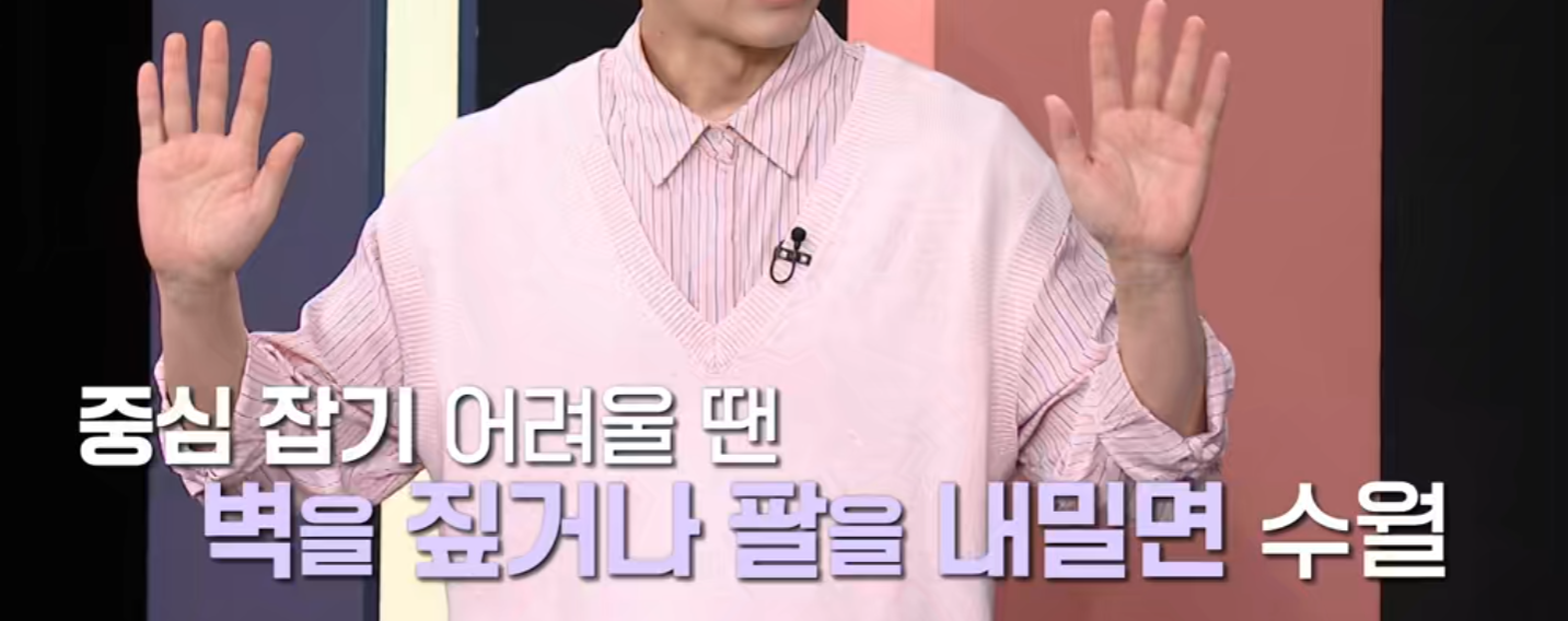 - 균형이 어려울 경우 벽이나 의자를 잡고 진행하세요.