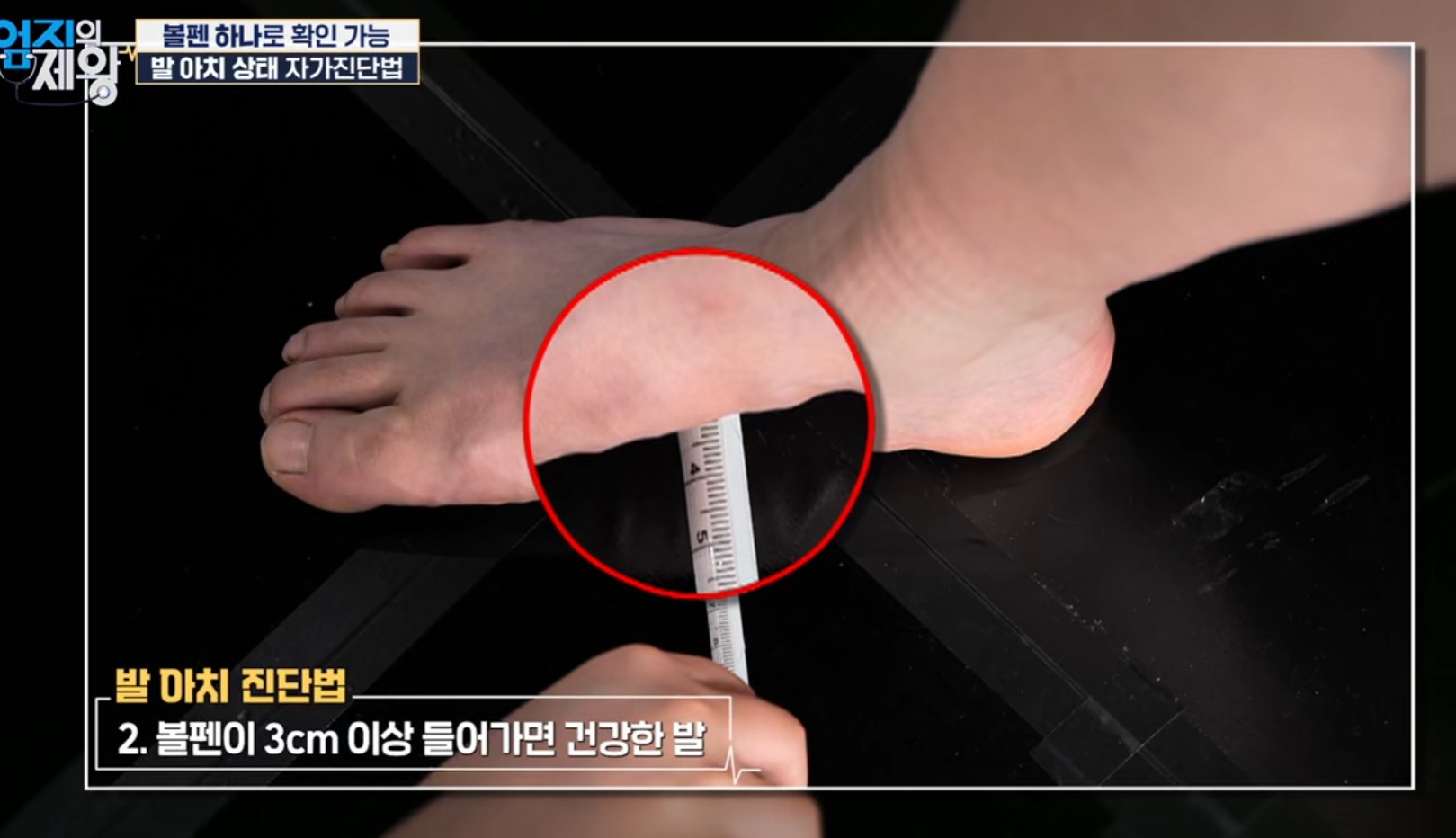 - 볼펜이 3cm 이상 들어가지 않으면 → 발 건강 이상 가능성, 평발·아치 무너짐 의심