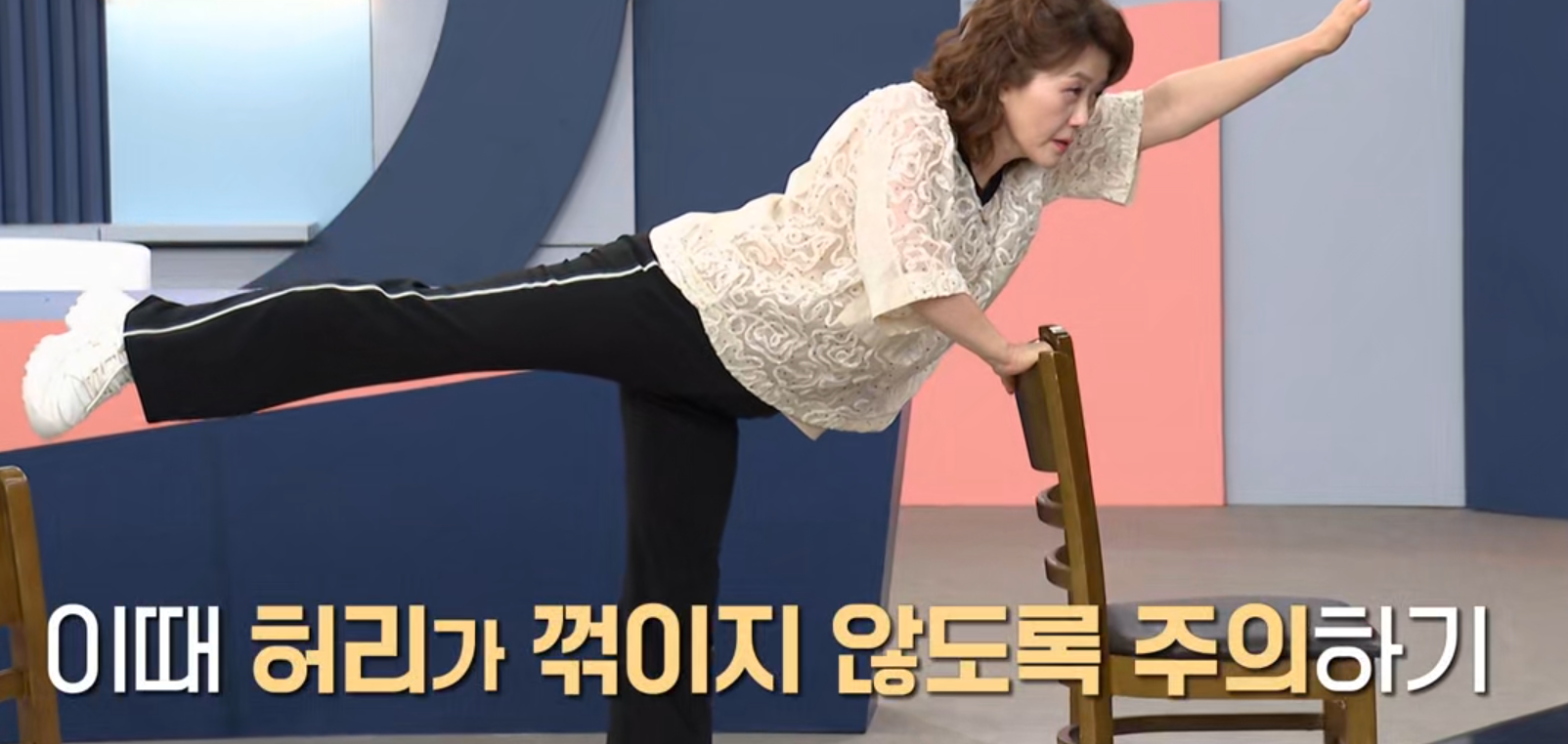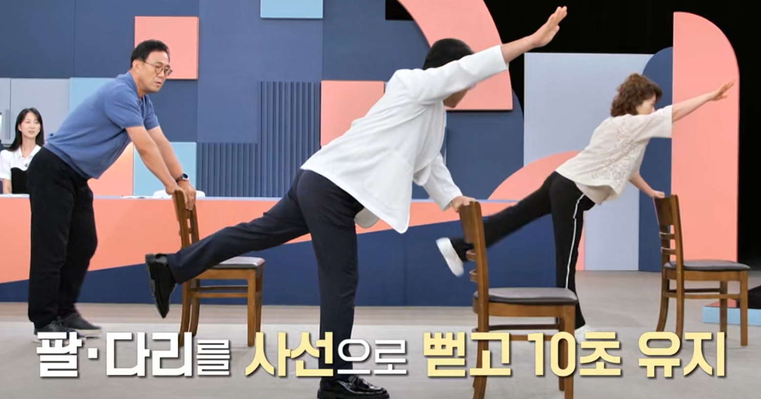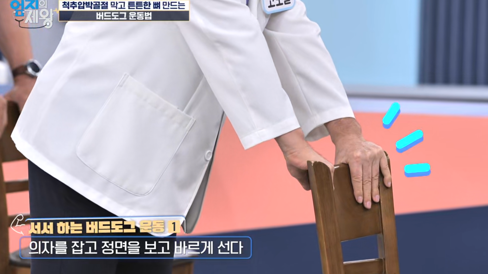 바닥형 버드도그는 손목·무릎 등 관절에 부담이 될 수 있어 노년층이나 관절염이 있는 분들은 어렵게 느낄 수 있습니다. 고도일 전문의가 소개한 방식은 의자 또는 테이블을 잡고 서서 수행하는 변형으로, 낙상 위험을 낮추고 골다공증 환자도 시도하기 좋은 방법입니다.