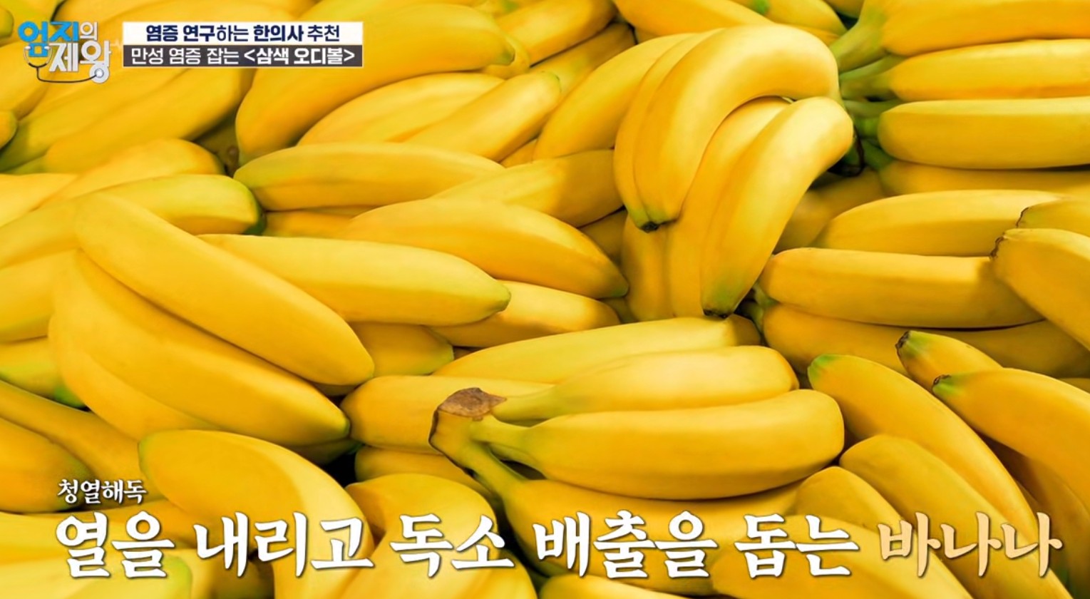 - 바나나 → 청열해독 + 비타민 C·B6·브로멜라인(염증 완화)