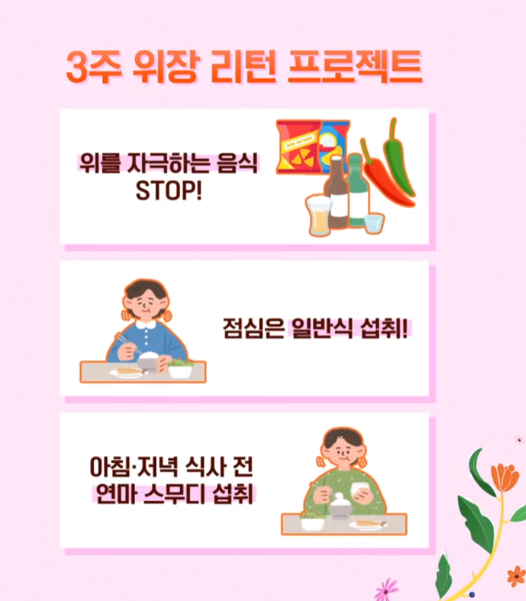 정영규 내과의는 위장 건강을 되살리기 위해 다음과 같은 생활법을 제안했습니다.
