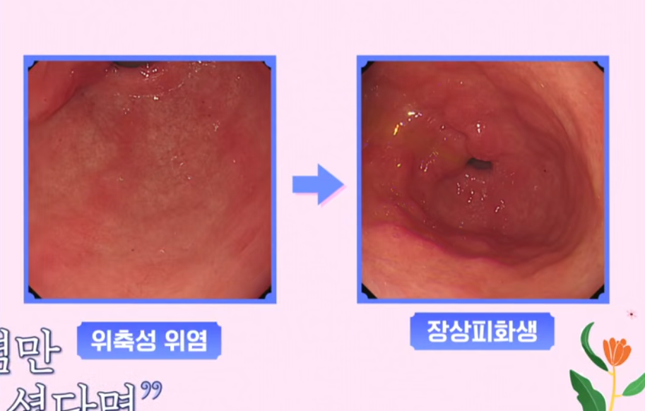- 화생성 위염 – 위 점막 세포가 장점막 세포로 변해 위암 위험 증가