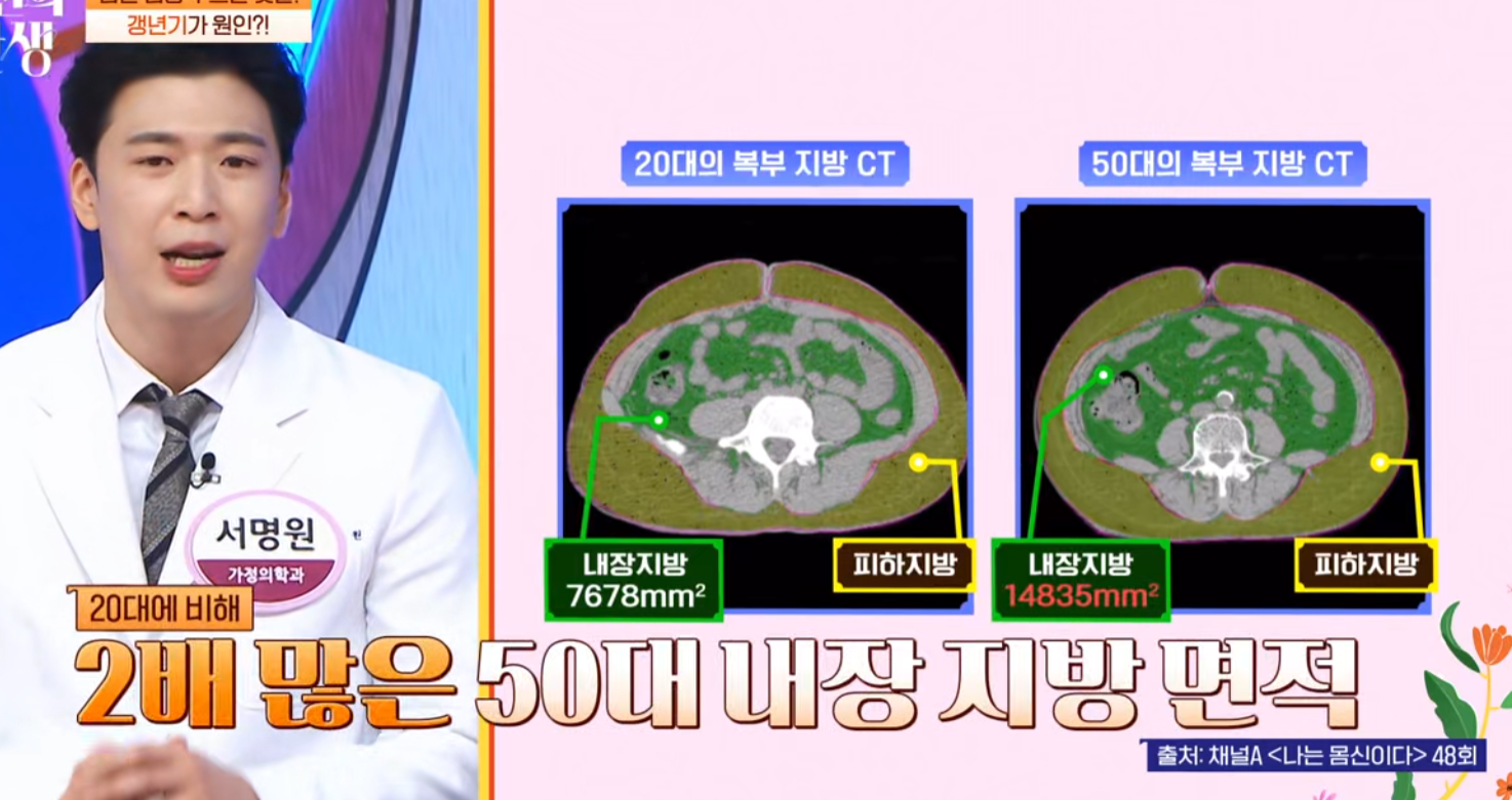 - 호르몬 변화: 에스트로겐 감소로 지방 분포가 복부(내장지방) 중심으로 이동.