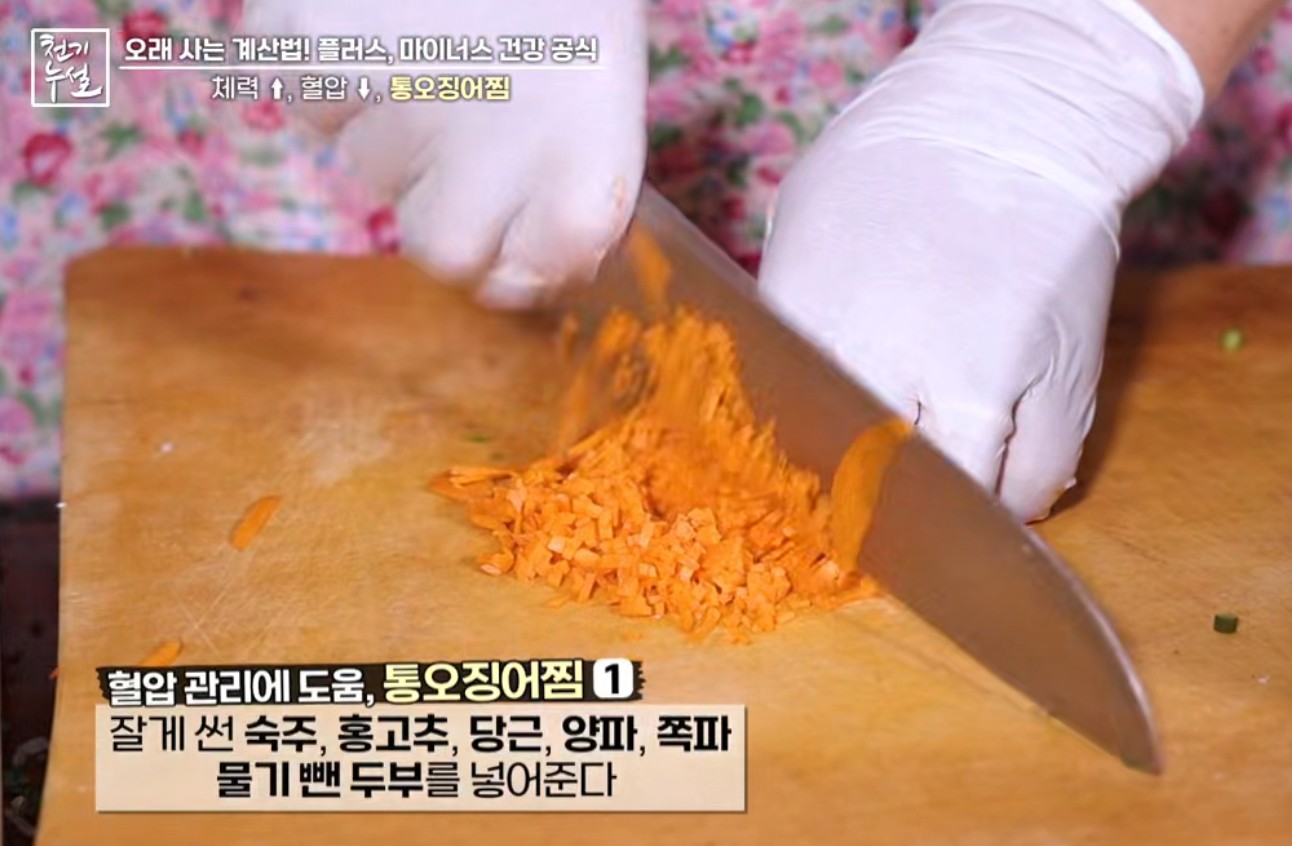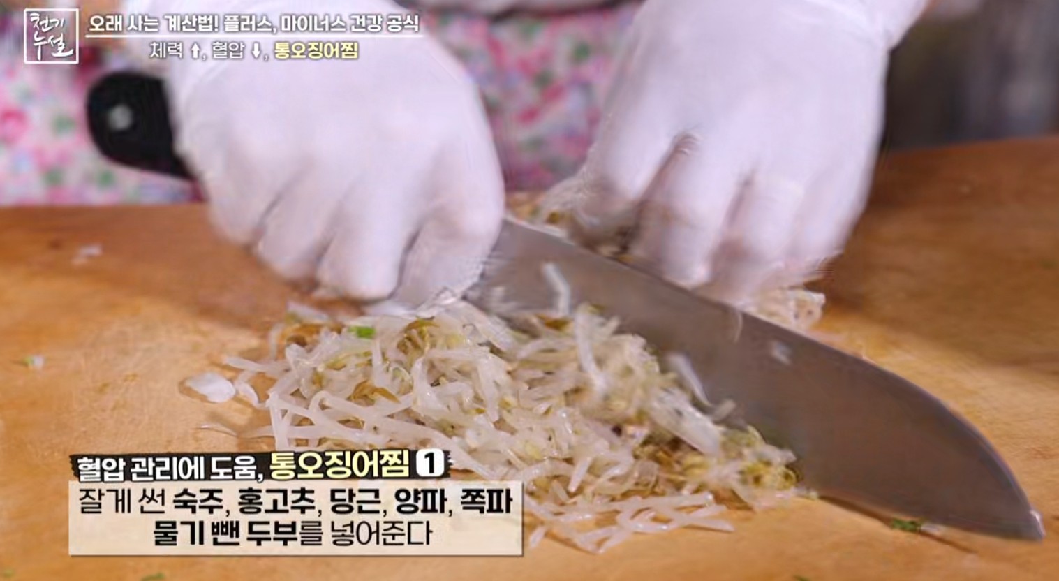 • 오징어(몸통·다리), 숙주, 홍고추, 당근, 양파, 쪽파, 두부(물기 제거)