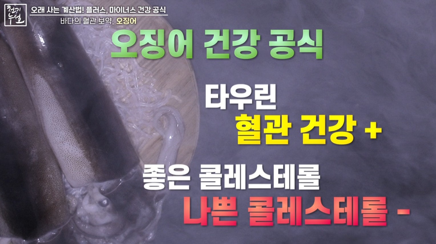 오징어 효능과 부작용을 한눈에 정리했습니다. 타우린과 HDL 작용으로 혈관 건강에 좋은 이유부터 제철 시기, 손질법, 섭취 주의사항까지! 천기누설 689화에서 소개된 오징어 건강 레시피도 함께 확인하세요.