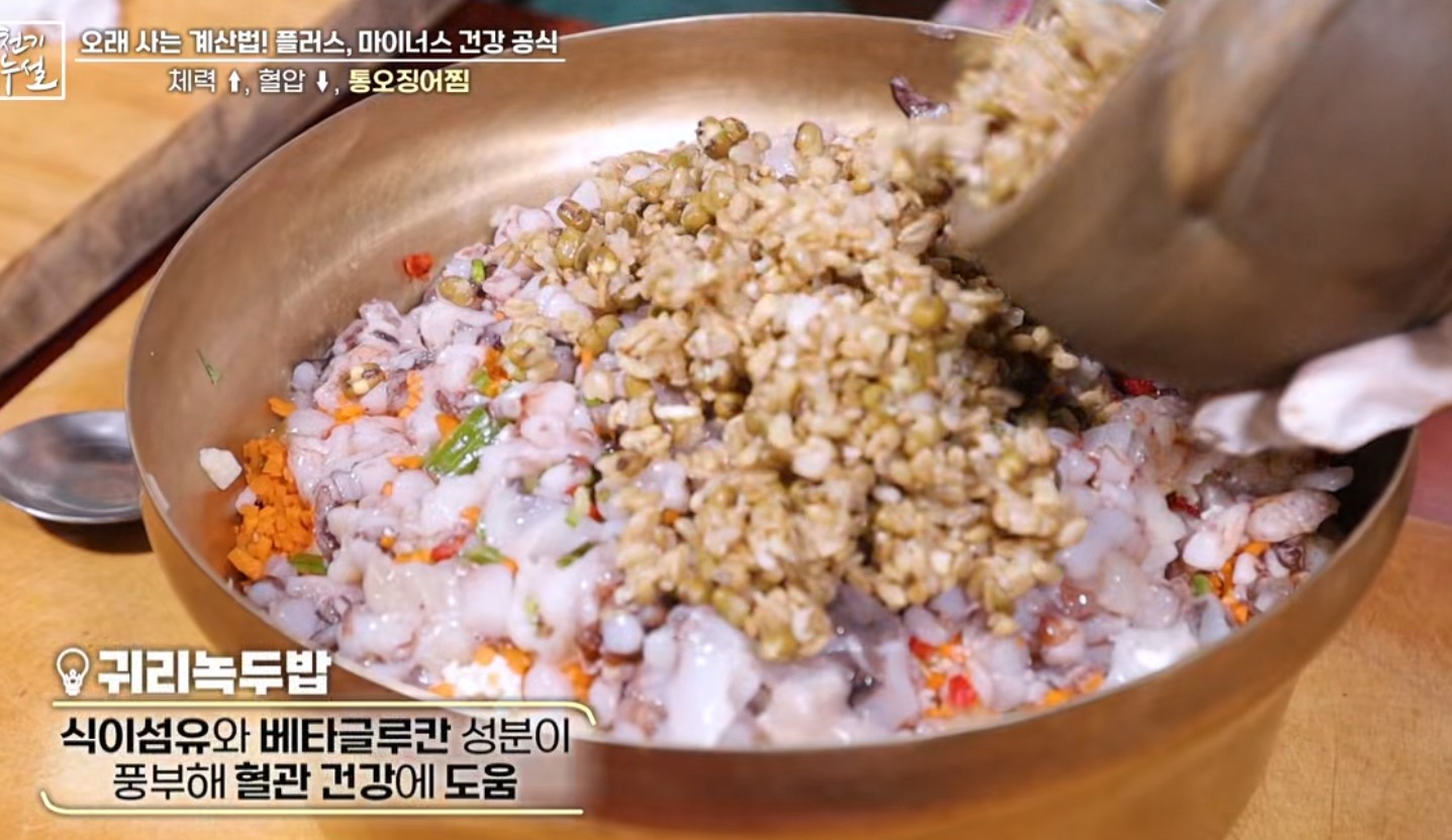 - 귀리녹두밥을 넣어 속 재료를 완성합니다.