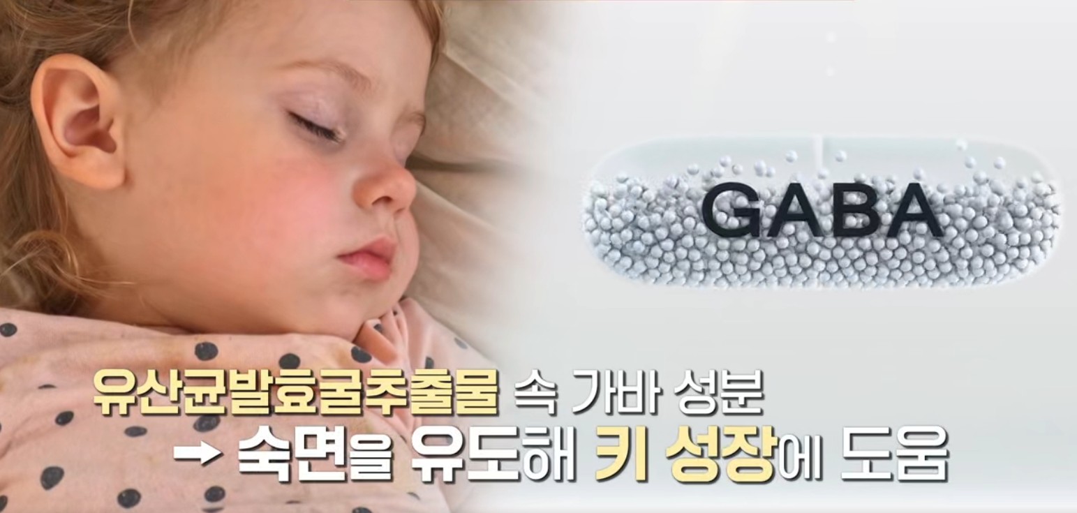 - 발효굴추출물 : 기존 성분 + 발효로 생긴 가바와 유산균 대사산물 → 신경 안정 + 숙면 + 성장호르몬 자극 → 키 성장·뼈 건강 강화
