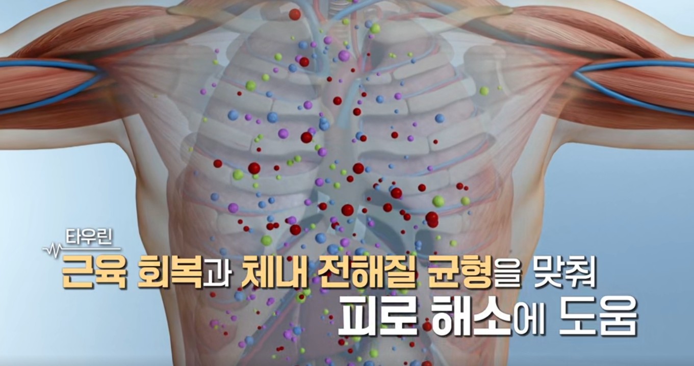 또 다른 주요 성분인 타우린은 간의 해독 작용을 강화하고 피로 물질을 배출하는 데 도움을 주어 간 기능을 개선합니다.