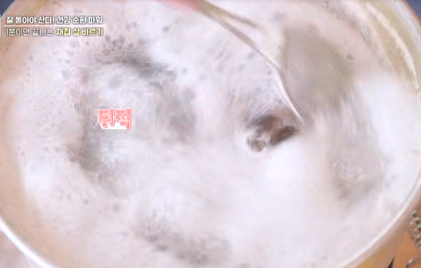 살 분리 팁: 끓는 냄비에 재첩을 넣고 채망으로 저어주면 살은 위로 뜨고 껍질은 아래로 가라앉음 → 체망으로 껍질만 걷어 분리