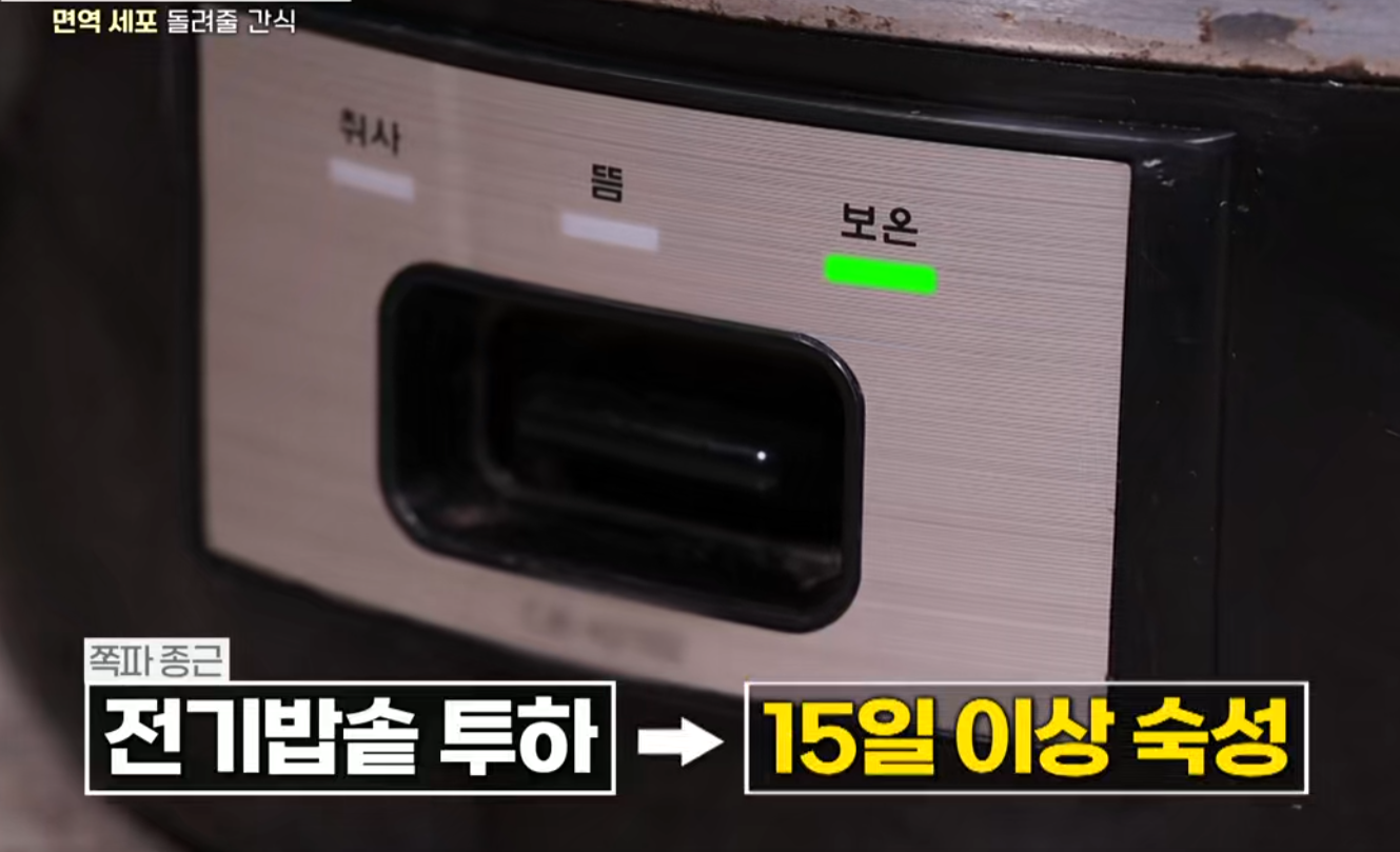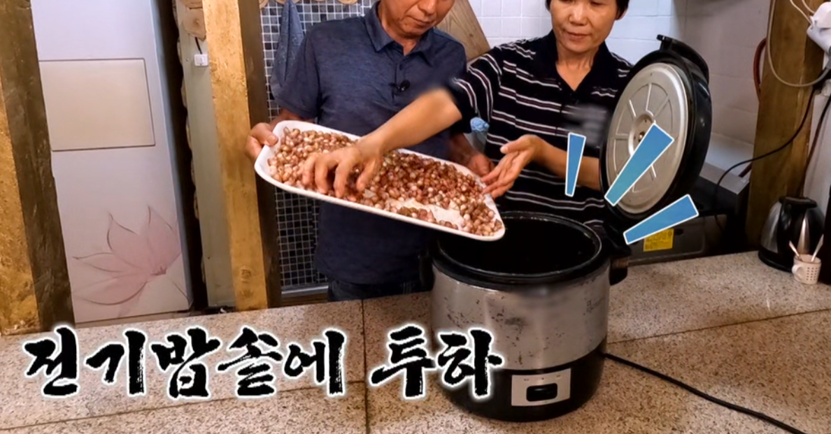 3. 숙성 준비: 잘 말린 종근을 전기밥솥에 넣습니다.