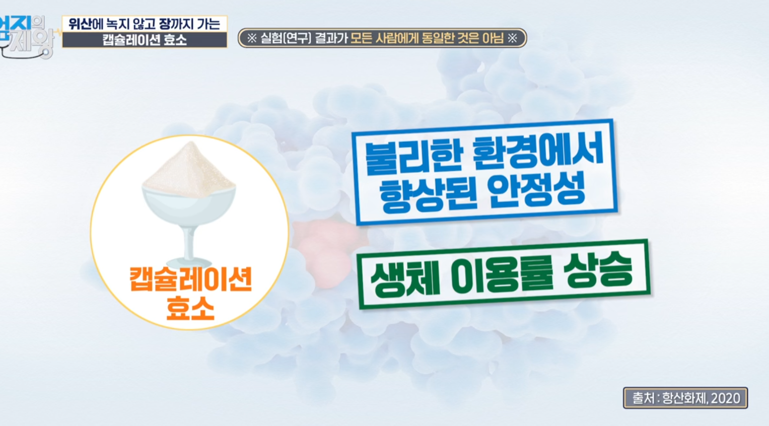 • 캡슐레이션 공법: 효소를 미세 캡슐로 감싸 위산으로부터 보호