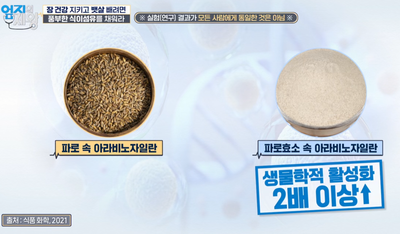 • 아라비노자일란 → 장내 유익균의 먹이가 되는 프리바이오틱스, 포만감 유지, 혈당 조절에 도움