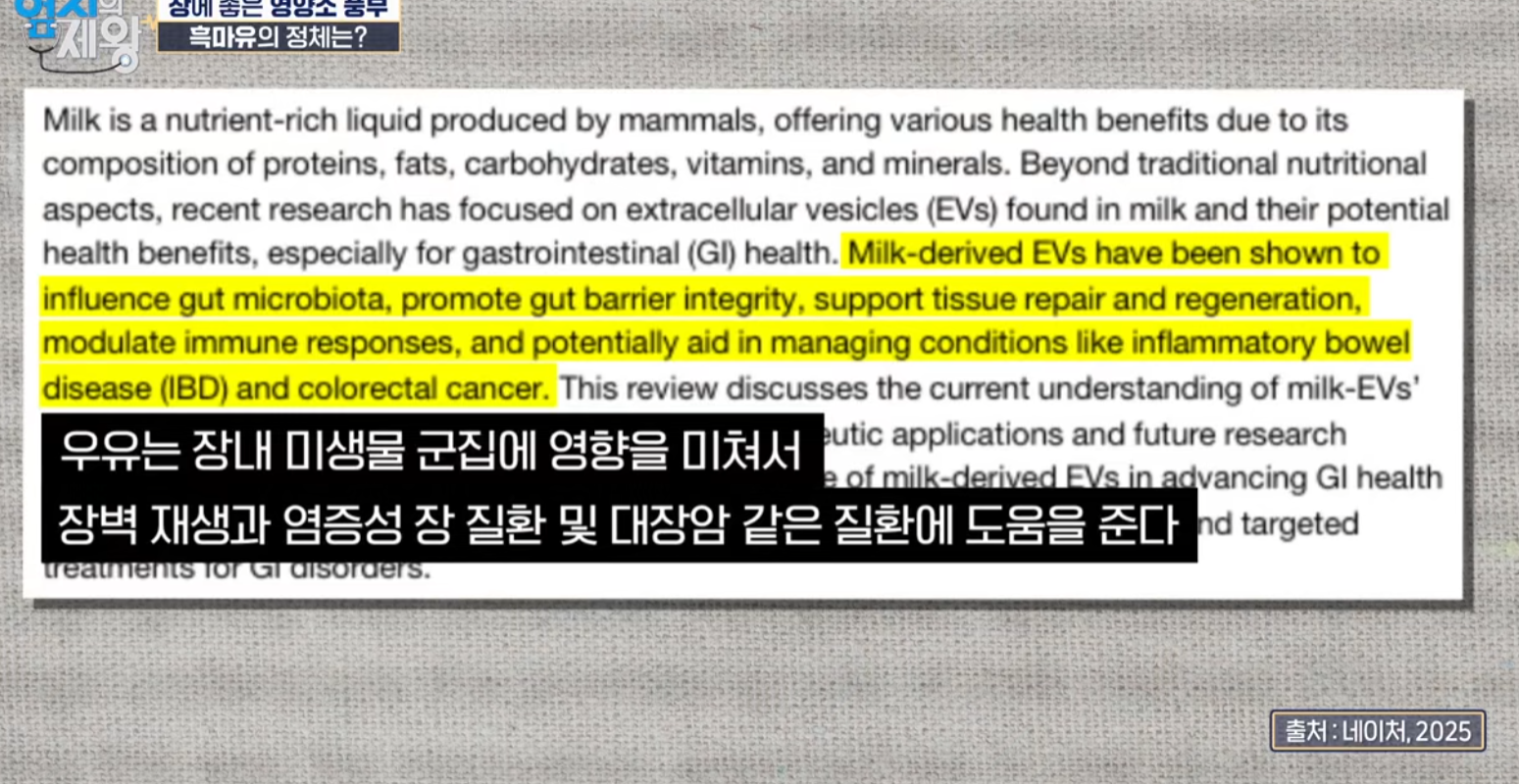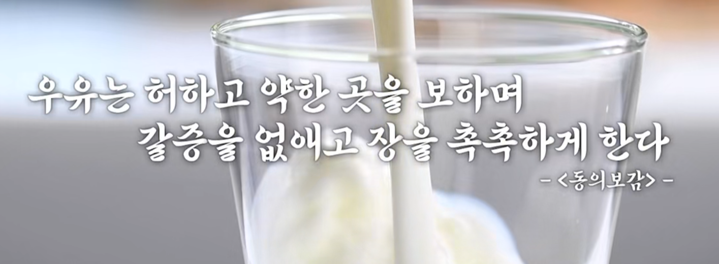 • 천연 장 보호막: 우유 — 『동의보감』에 우유는 허약한 곳을 보하고 장을 촉촉하게 한다고 기록, 현대 연구에서도 장내 미생물과 장벽 건강에 긍정적 영향 보고